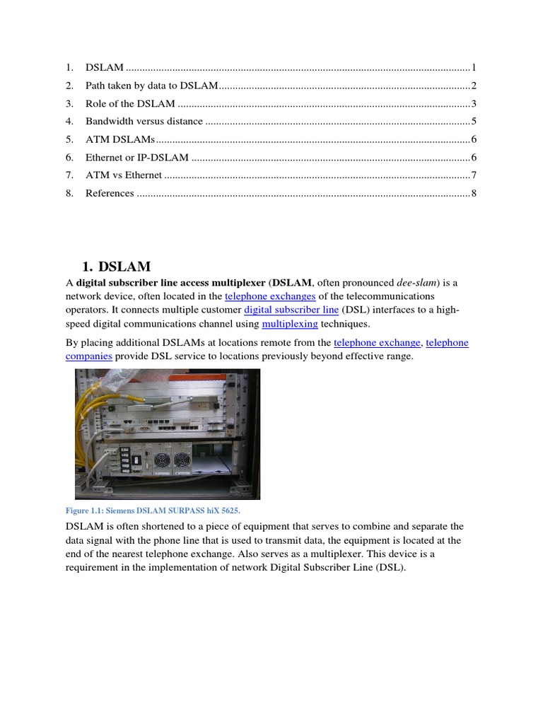 its device architecture and setup, a DSLAM aggregates the DSL lines over its Asynchronous