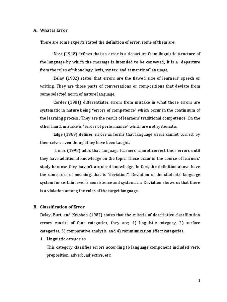stage, the errors are explained linguistically and psychologically in other to help