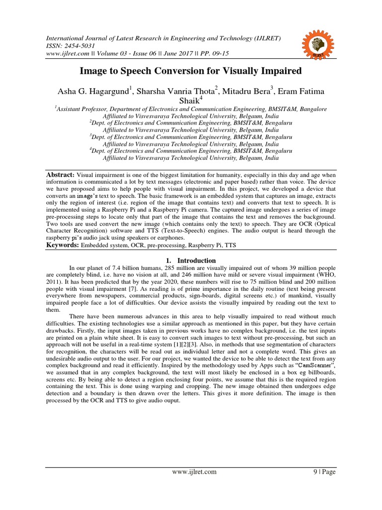 converts an image’s text to speech. The basic framework is an embedded system that captures an image, extracts