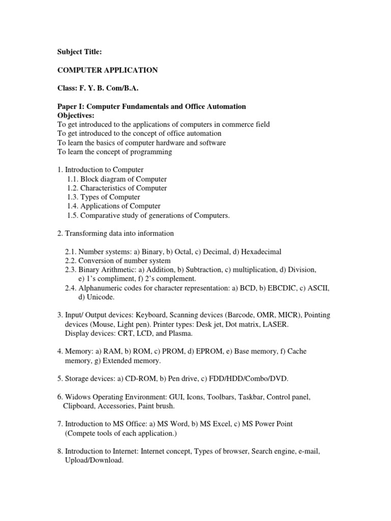 Paper I: Computer Fundamentals and Office Automation