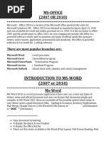 • Introduction to Word Processing software, Benefits of Word Processing software