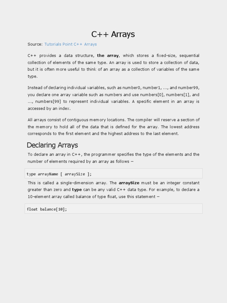 Source: Tutorials Point C++ Arrays