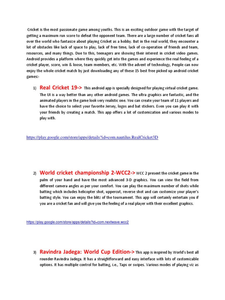 resources, and many things. Due to this, teenagers are showing their interest in cricket video games.