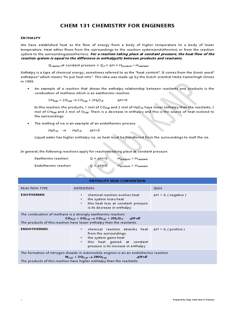 CHEM 131 CHEMISTRY FOR ENGINEERS
