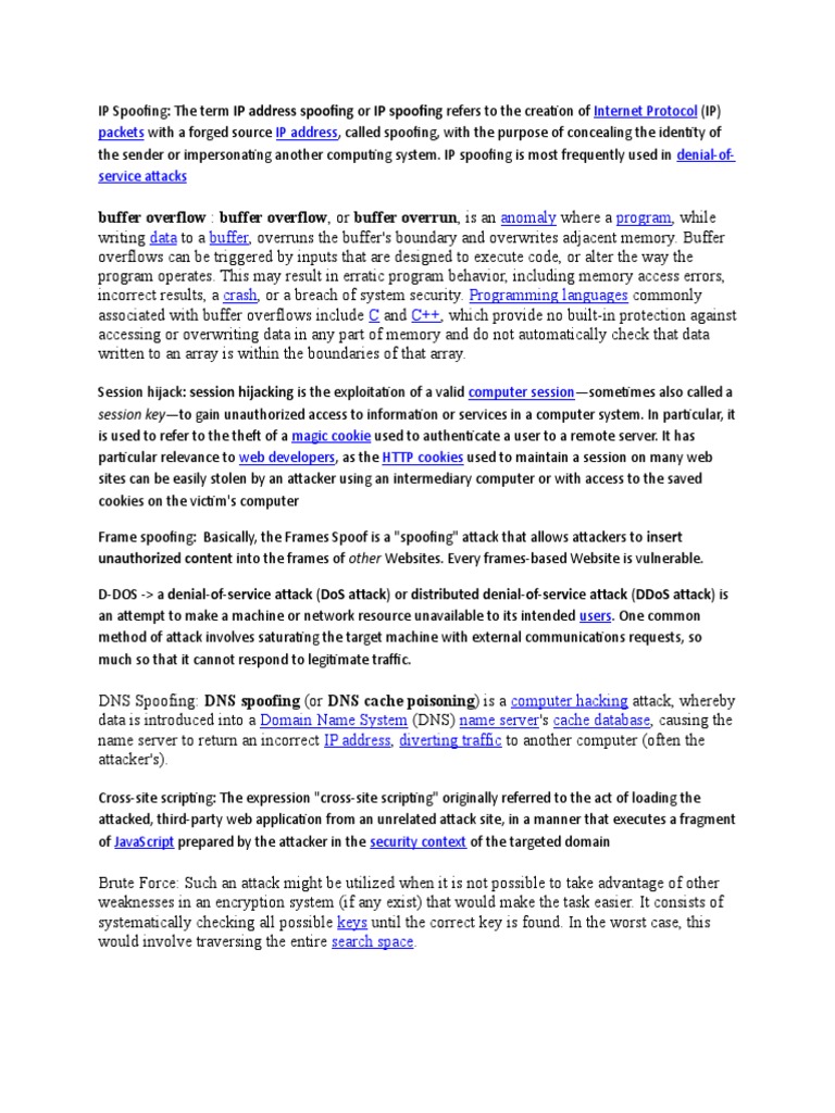 IP Spoofing: The term IP address spoofing or IP spoofing refers to the creation of Internet Protocol (IP)