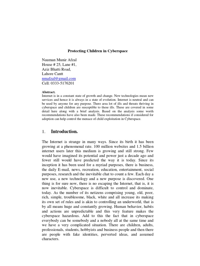 cyberspace and children are susceptible to these ills. These are covered in some
