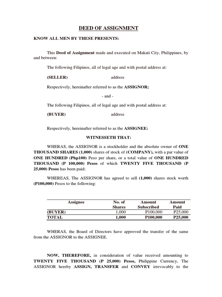 This Deed of Assignment made and executed on Makati City, Philippines, by