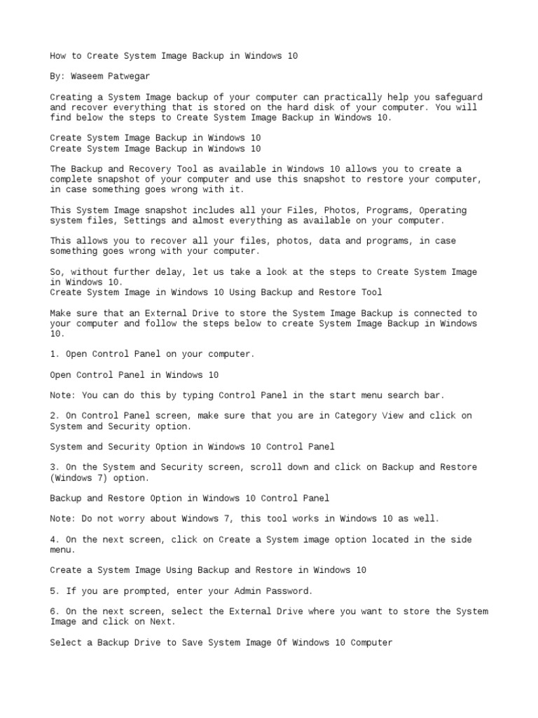 How to Create System Image Backup in Windows 10