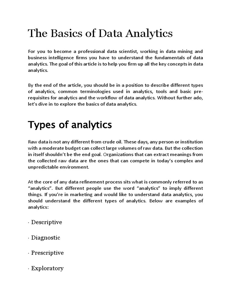 analytics. The goal of this article is to help you firm up all the key concepts in data