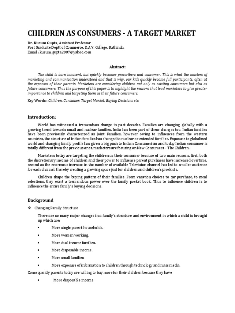 Key Words : Children, Consumer, Target Market, Buying Decisions etc.