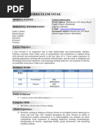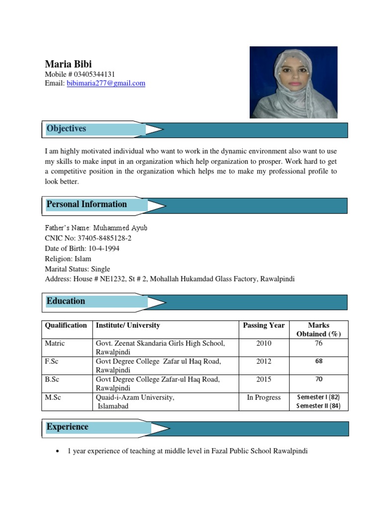1 year experience of teaching at middle level in Fazal Public School Rawalpindi