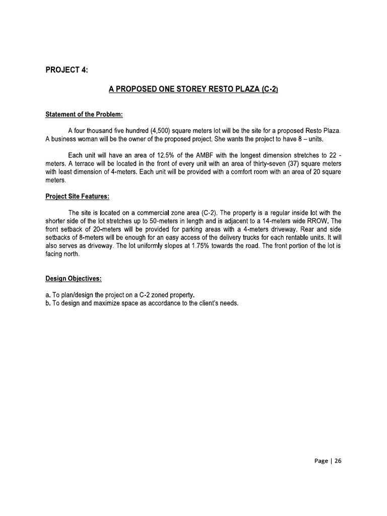 with least dimension of 4-meters. Each unit will be provided with a comfort room with an area of 20 square