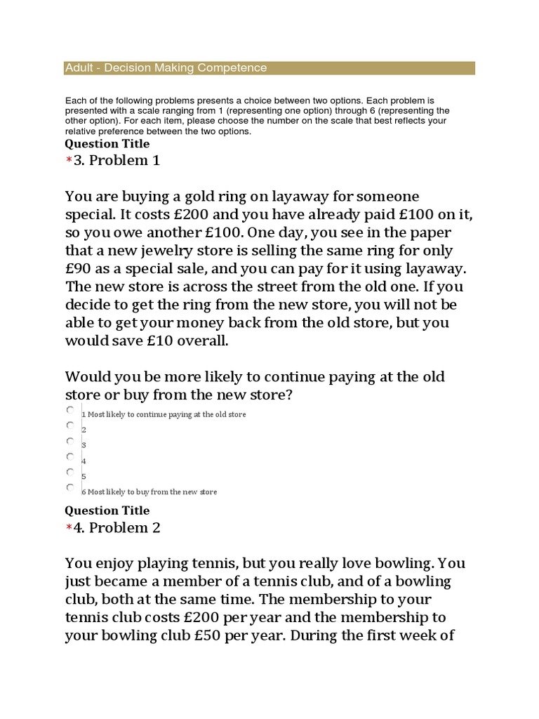 presented with a scale ranging from 1 (representing one option) through 6 (representing the