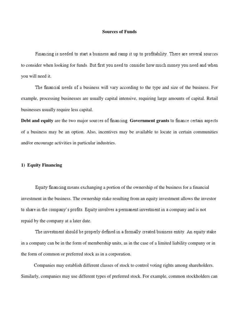 Financing is needed to start a business and ramp it up to profitability. There are several sources