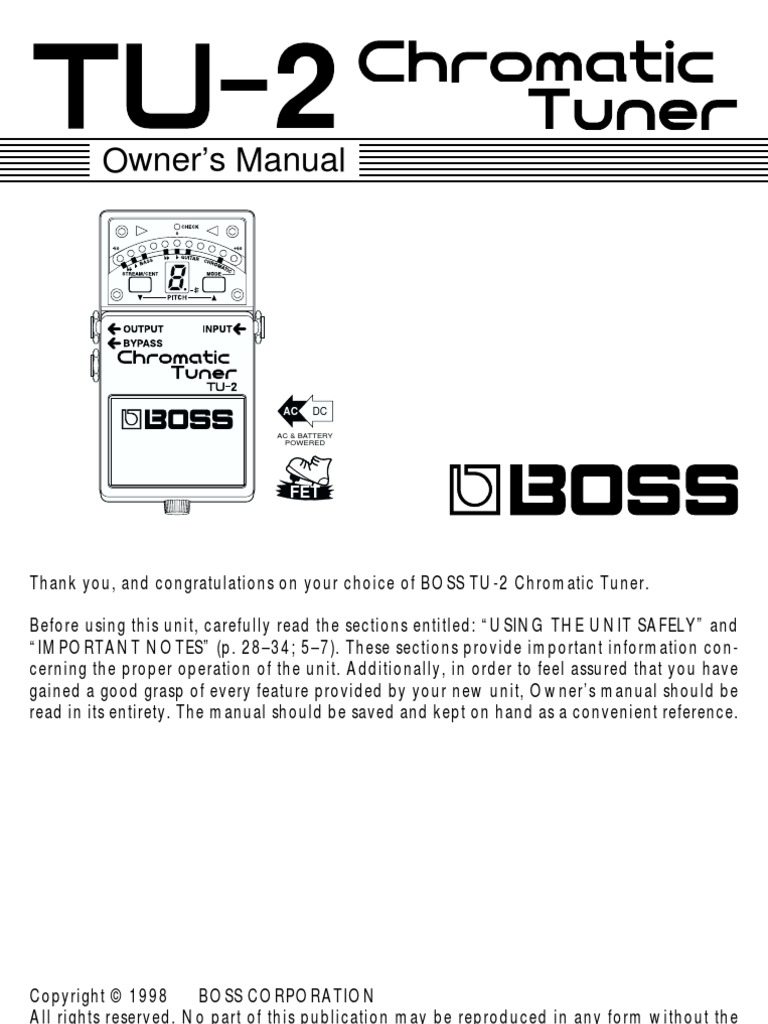 Thank you, and congratulations on your choice of BOSS TU-2 Chromatic Tuner.