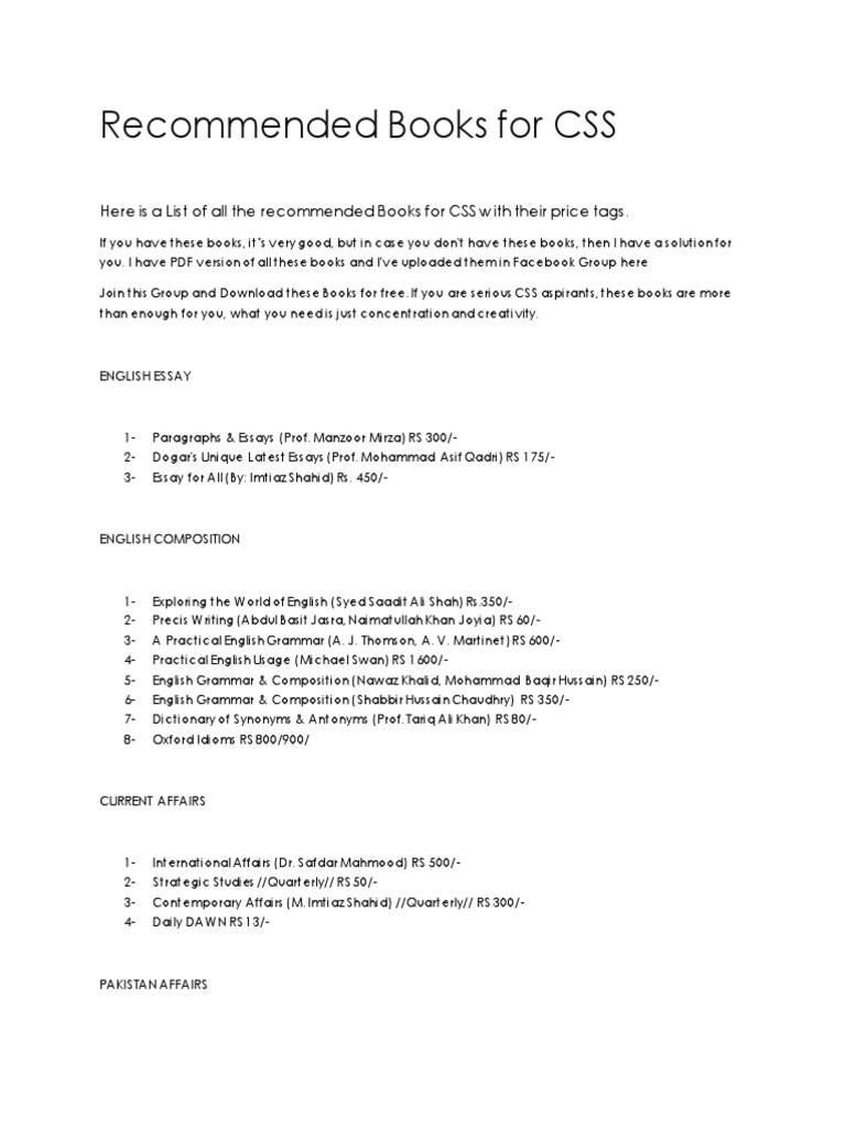 Join this Group and Download these Books for free. If you are serious CSS aspirants, these books are more