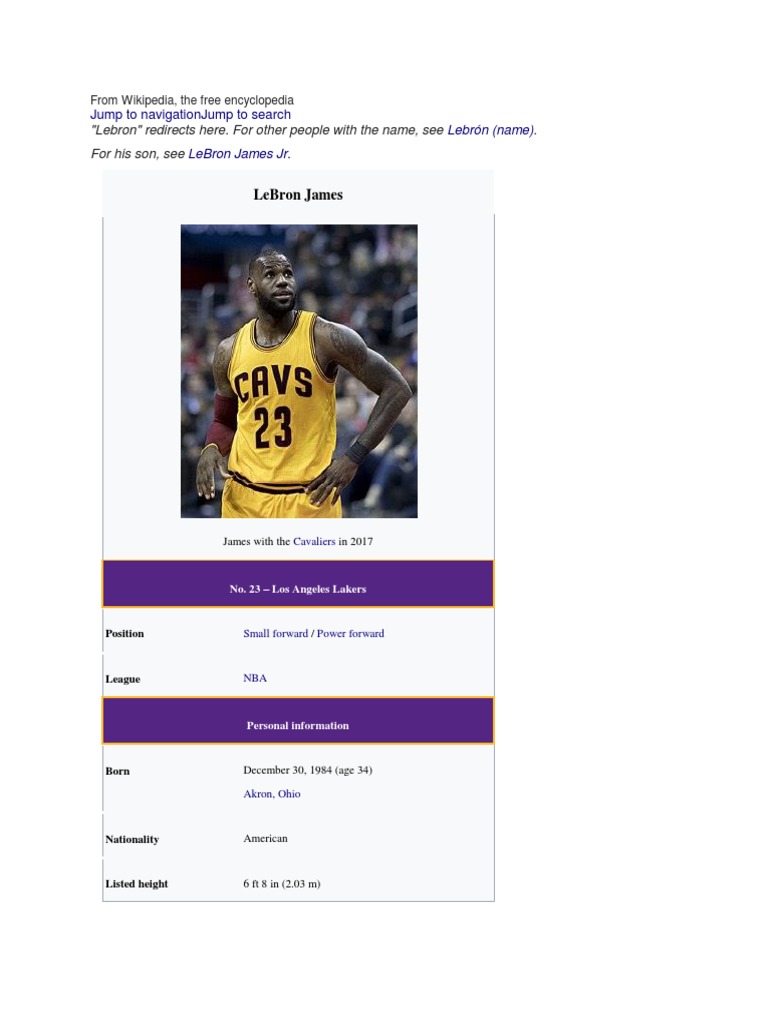 "Lebron" redirects here. For other people with the name, see Lebrón (name).
