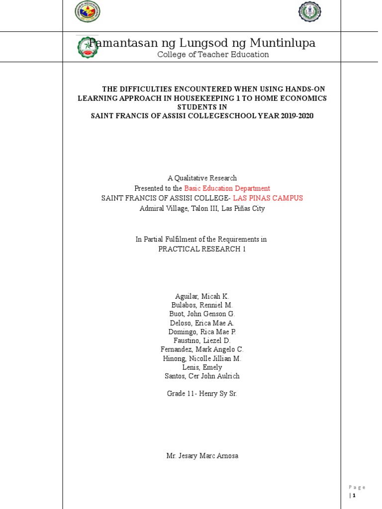 hands-on learning approach. This researchers will conduct the study at Saint Francis of