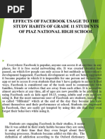 substantial amount of time on Facebook, tell that by a mean of 106 minutes on the