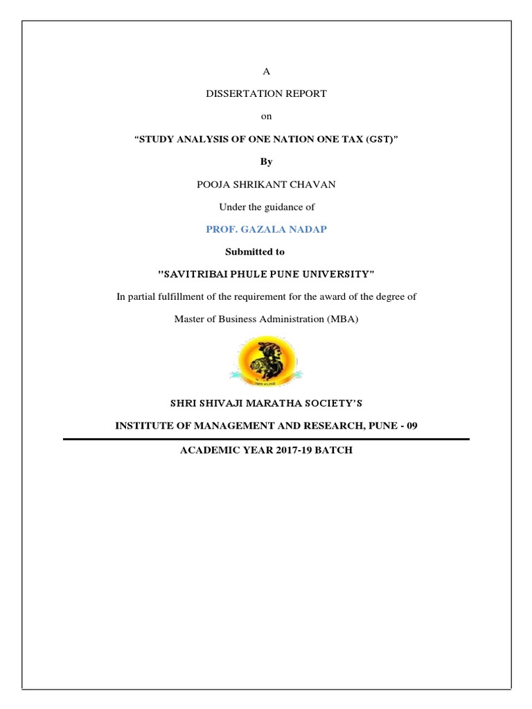 A Dissertation Report On: "Study Analysis of One Nation One Tax (GST) "