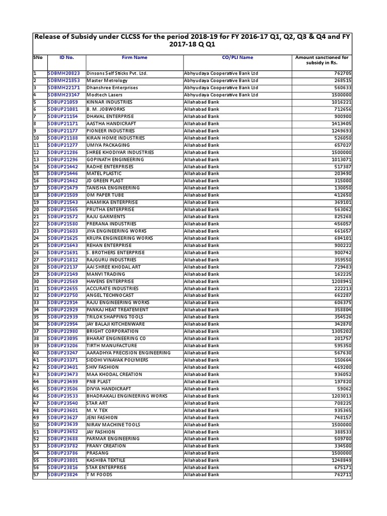 SNo ID No. Firm Name CO/PLI Name Amount sanctioned for