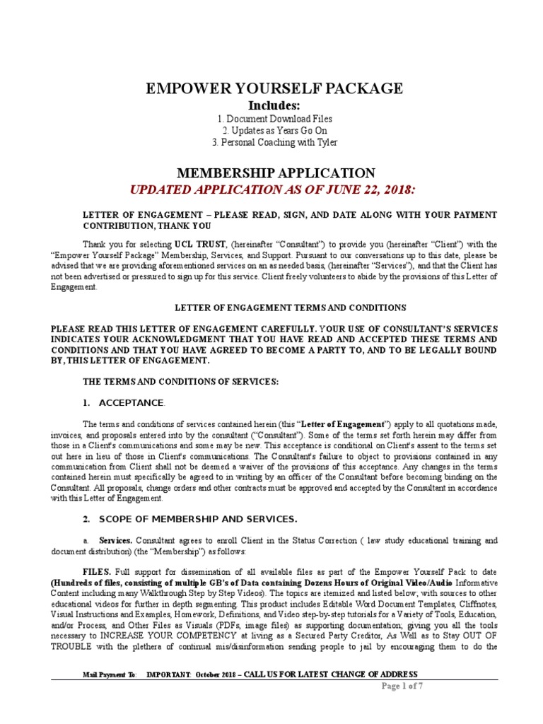 “Empower Yourself Package” Membership, Services, and Support. Pursuant to our conversations up to this date, please be