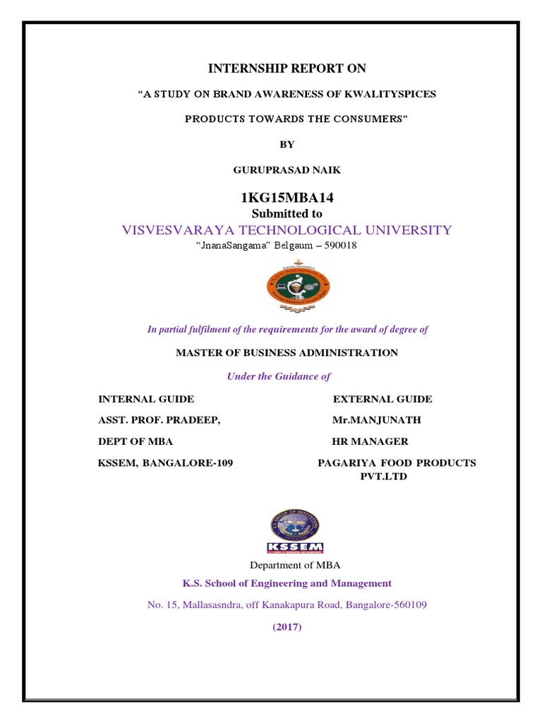 doing research. “A STUDY ON BRAND AWARENESS OF KWALITYSPICES
