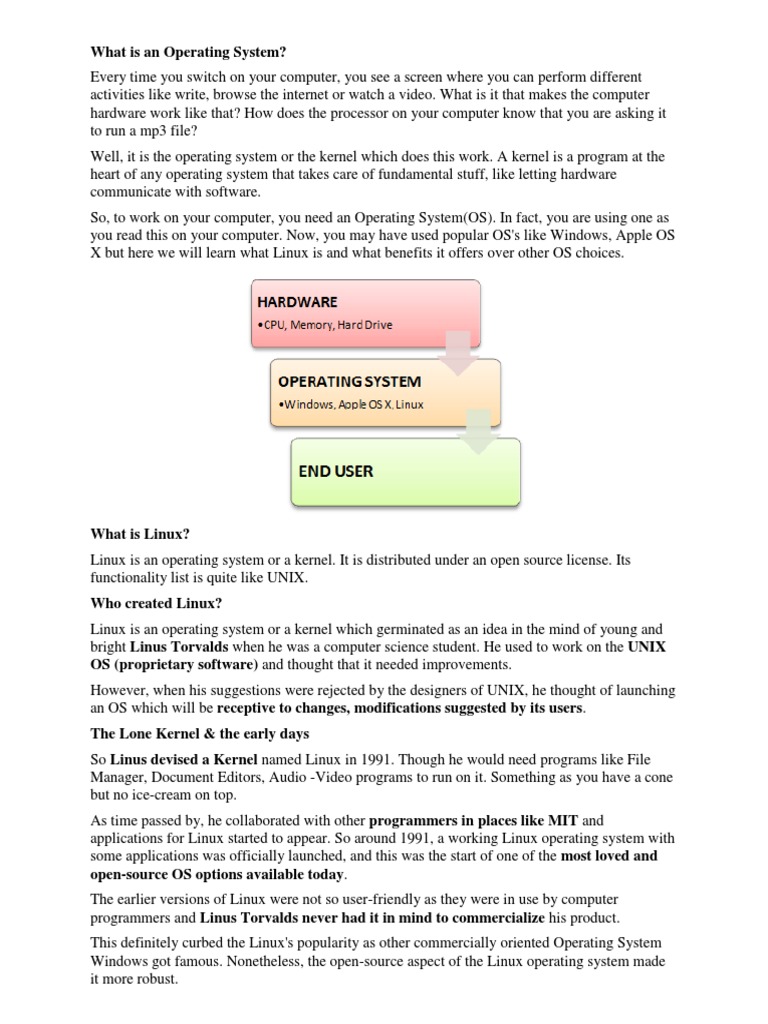 Linux is an operating system or a kernel which germinated as an idea in the mind of young and