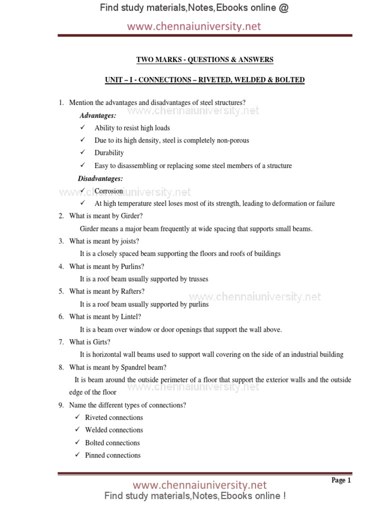 UNIT – I - CONNECTIONS – RIVETED, WELDED & BOLTED