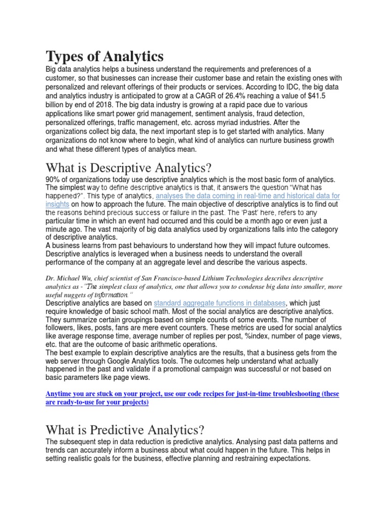 minute ago. The vast majority of big data analytics used by organizations falls into the category
