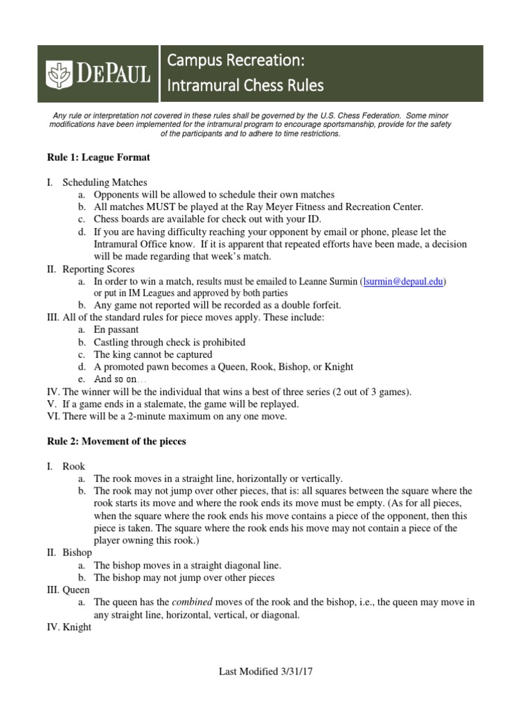 a. In order to win a match, results must be emailed to Leanne Surmin (lsurmin@depaul.edu)