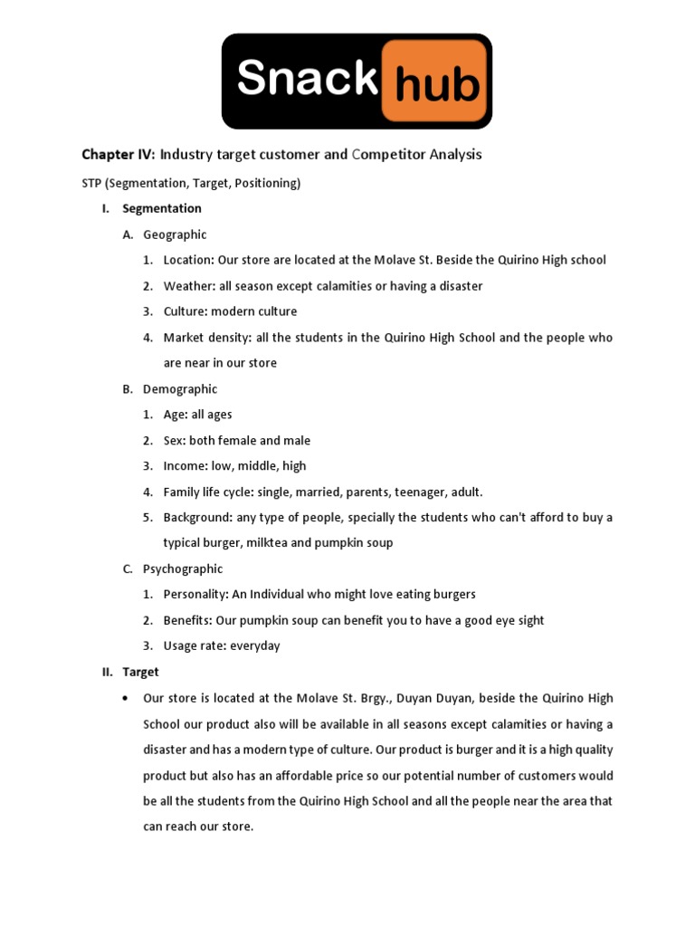 Chapter IV: Industry target customer and Competitor Analysis