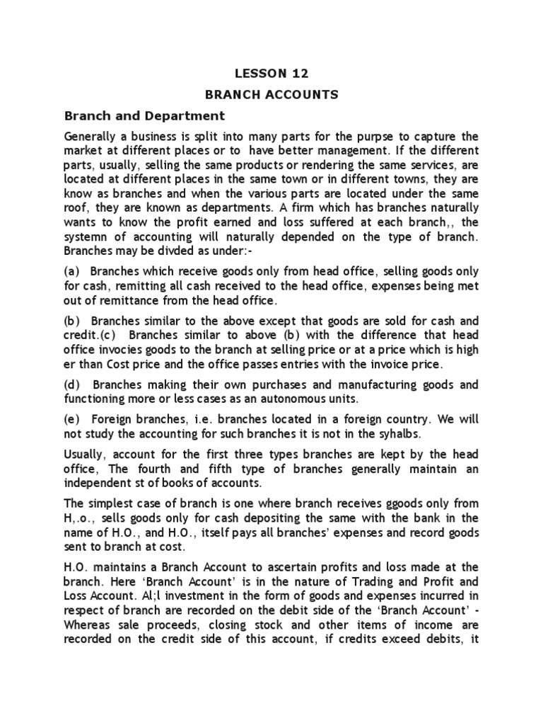 branch. Here ‘Branch Account’ is in the nature of Trading and Profit and