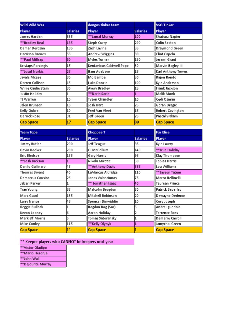 Devin Booker 200 CJ McCollum 140 **Jrue Holiday