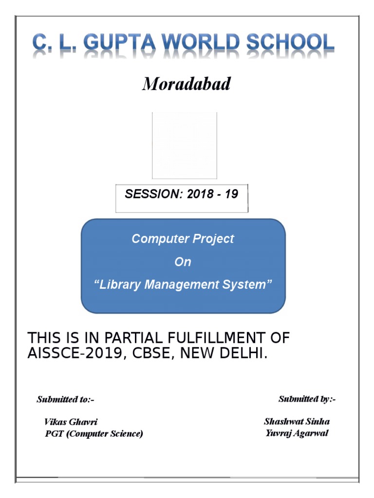 cout<<"\n\nSCHOOL : C.L. GUPTA WORLD SCHOOL, MORADABAD";