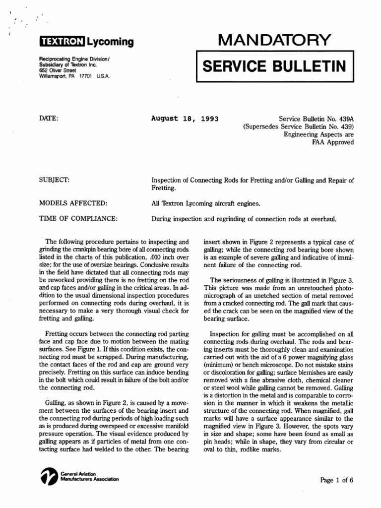MODELS AFFECTED: All Textron Lycoming aircraft engines.