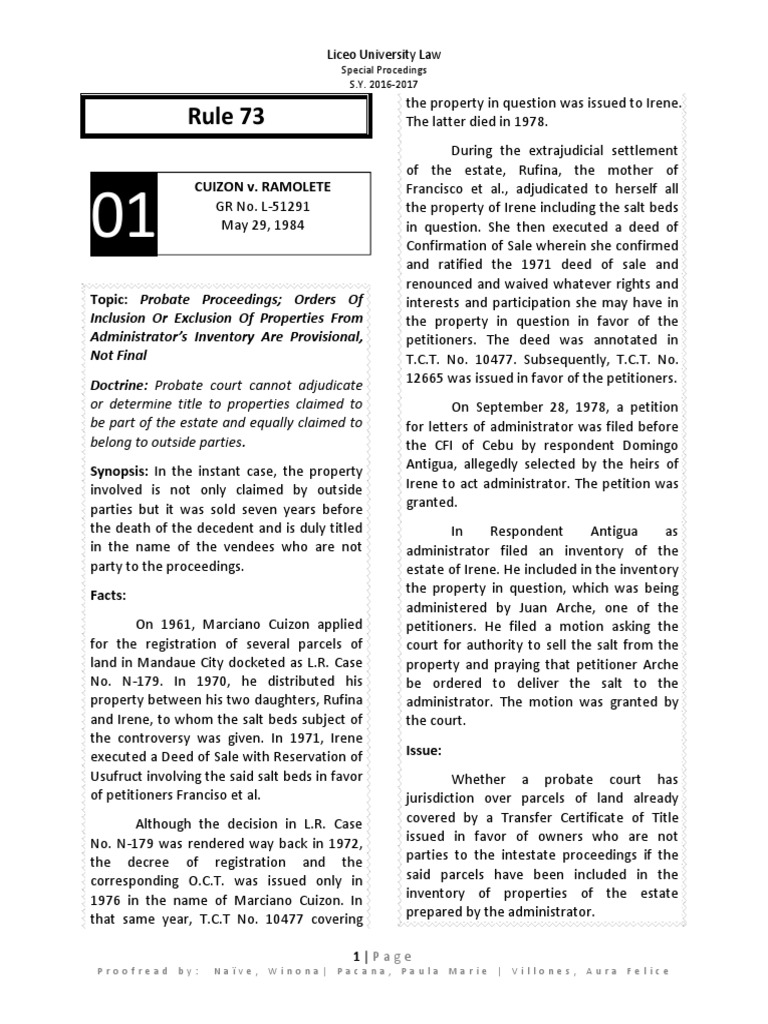 CUIZON v. RAMOLETE Francisco et al., adjudicated to herself all