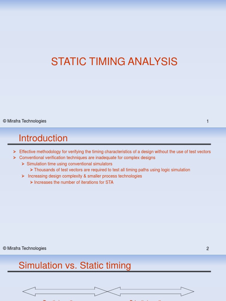 Static Timing Analysis is a method for determining if a circuit meets timing