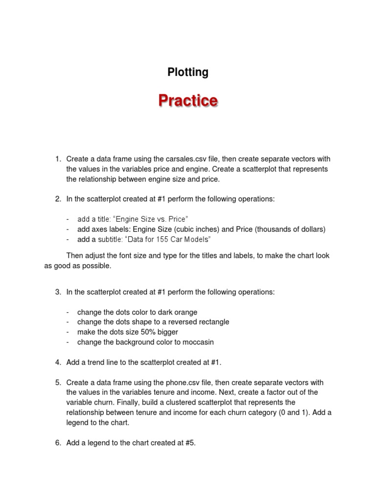 - add axes labels: Engine Size (cubic inches) and Price (thousands of dollars)