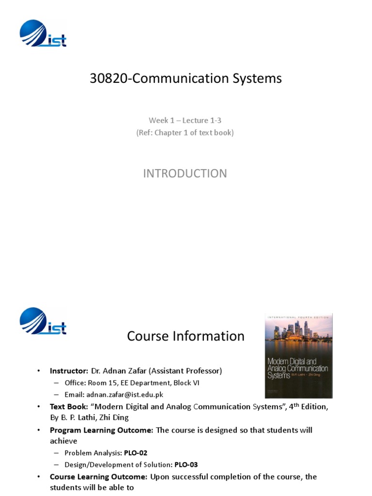 • Text Book: “Modern Digital and Analog Communication Systems”, 4th Edition,