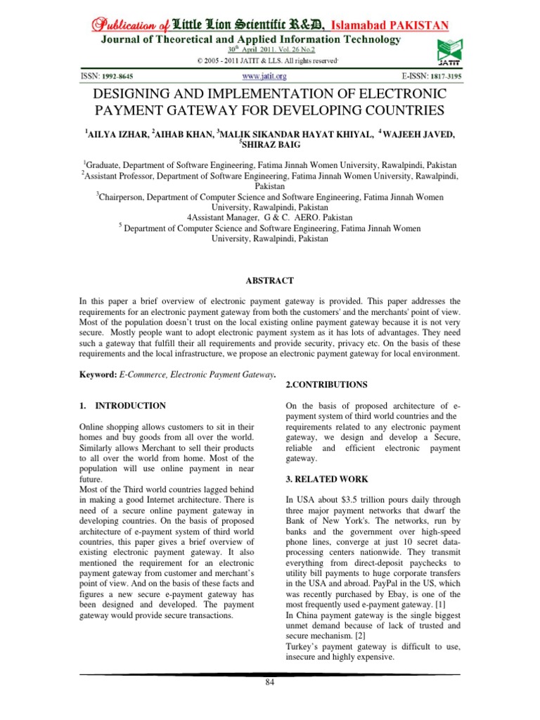 been designed and developed. The payment most frequently used e-payment gateway. [1]