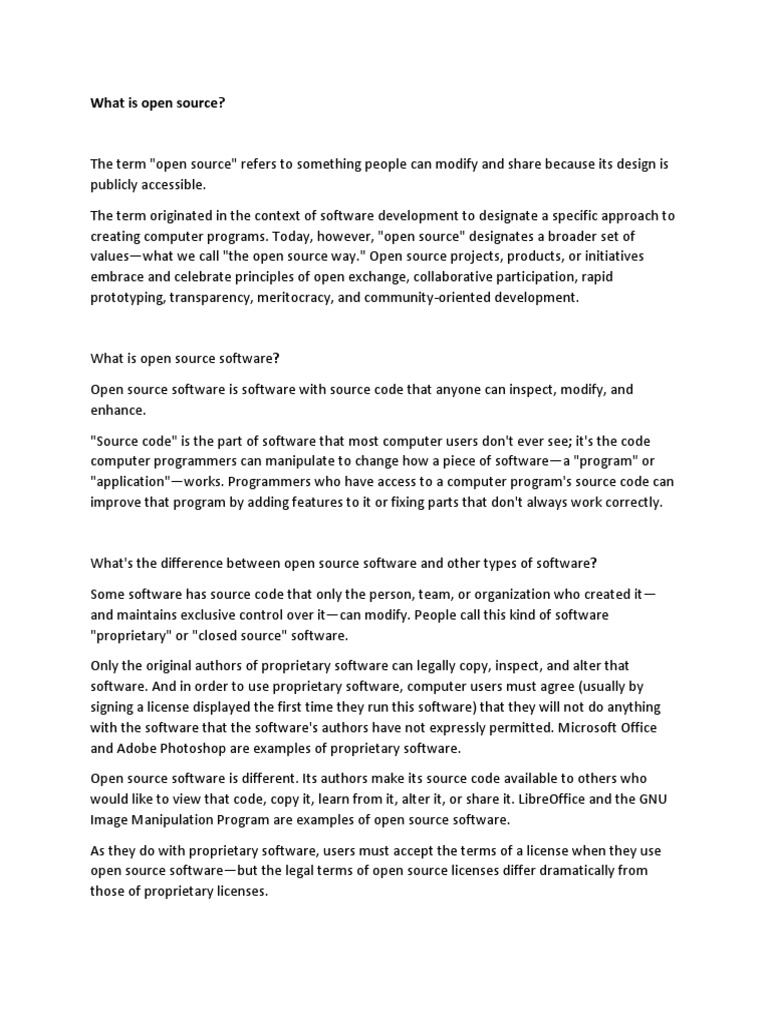 any purpose they wish. Some open source licenses—what some people call "copyleft"