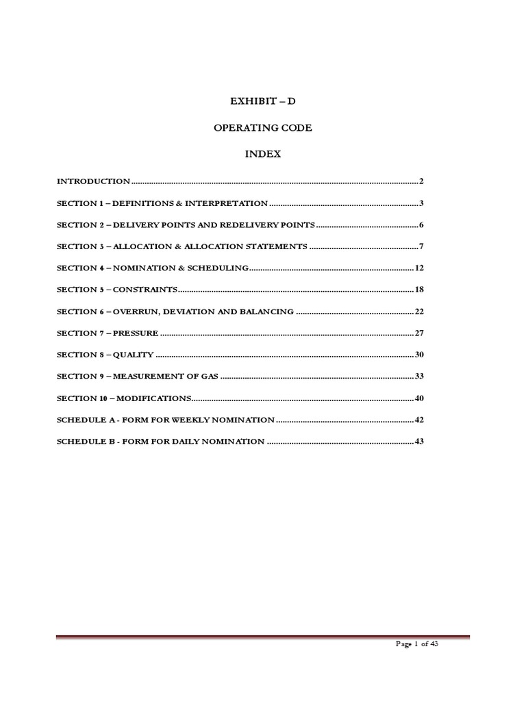 transportation of Transporter’s own Gas. This Operating Code shall be binding on the