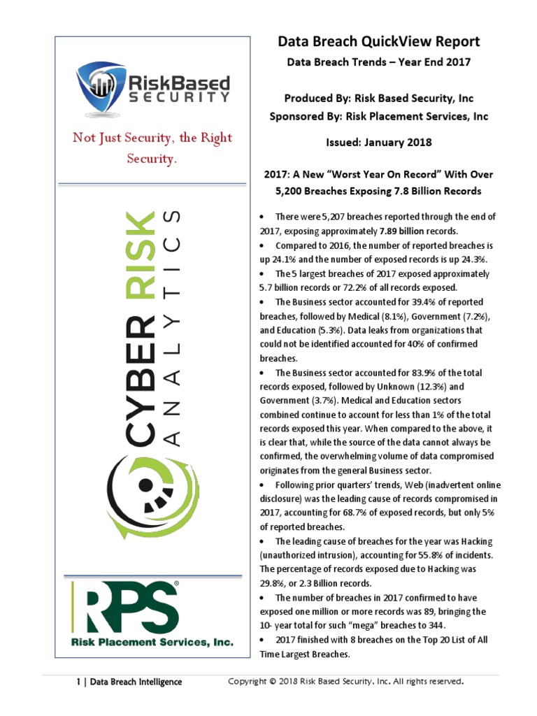 1 | Data Breach Intelligence Copyright © 2018 Risk Based Security, Inc. All rights reserved.