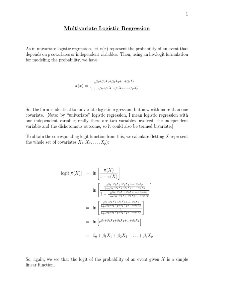 logit[π(X)] = β0 + β1 X1 + β2 X2 + . . . + βp Xp