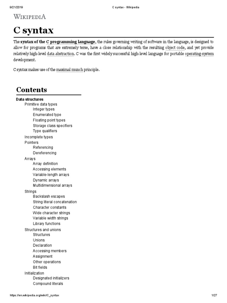 https://en.wikipedia.org/wiki/C_syntax 1/27