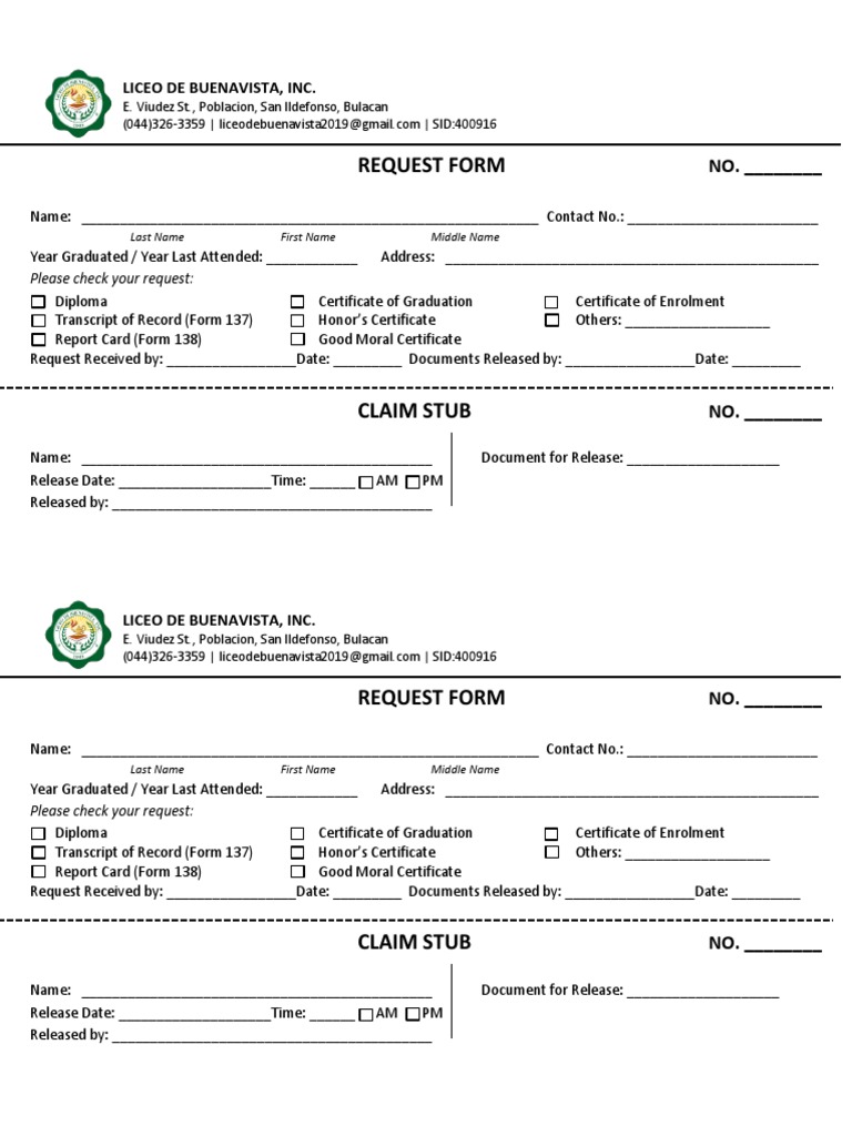 Request Received by: _________________Date: _________ Documents Released by: _________________Date: _________