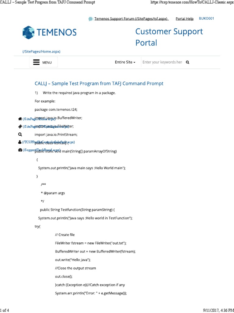 CALLJ – Sample Test Program from TAFJ Command Prompt https://tcsp.temenos.com/HowTo/CALLJ-Classic.