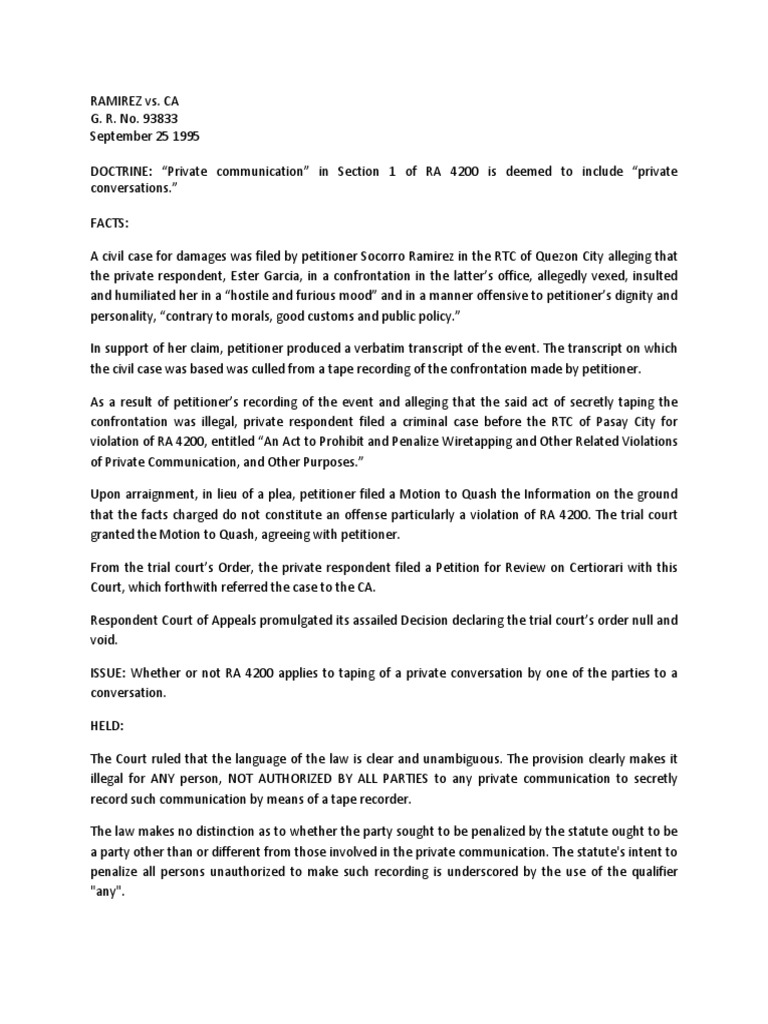 A civil case for damages was filed by petitioner Socorro Ramirez in the RTC of Quezon City alleging that