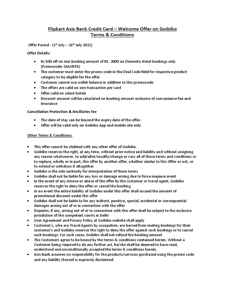 be withdrawn at the discretion of Axis Bank/Flipkart/ Goibibo
